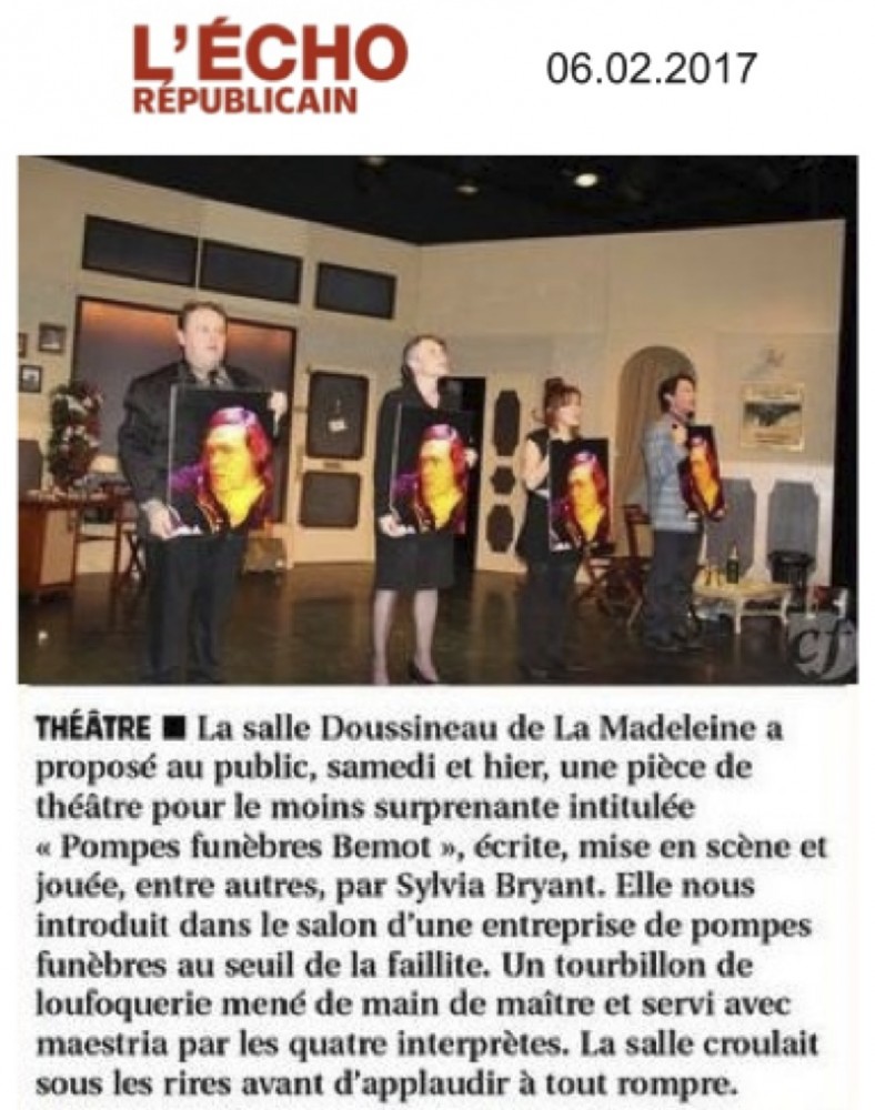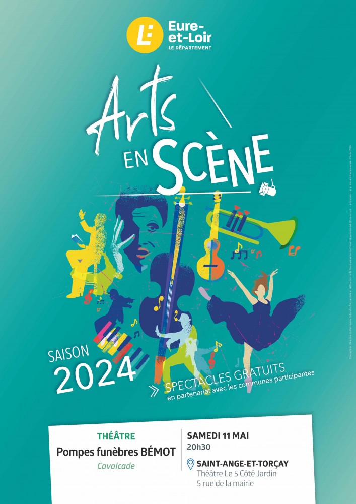 Nous avons le grand plaisir de vous annoncer que le département de l'Eure et Loir, dans le cadre du dispositif Arts en Scène a choisi notre théâtre, et notre Commune, pour accueillir le spectacle Pompes funèbres Bémot de la Compagnie Cavalcade.