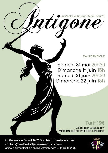 Avec dans le rôle d’Antigone : Marie-Claire Evain ; dans le rôle de Créon : Lionel Mur ; Le Coryphée : Baptiste Joët; Ismène : Alice Bohin / Mélanie Brandel; TIRÉSIAS : François Brandel;