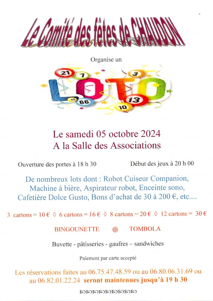 Réservations au 06.75.47.48.59 ou 06.80.06.31.69