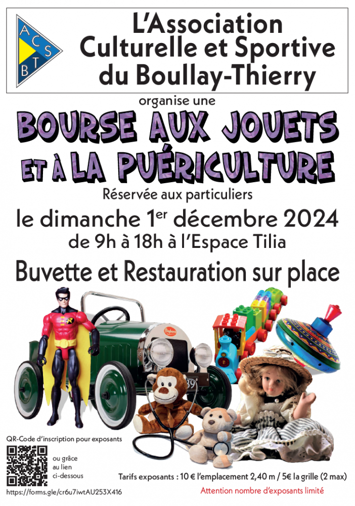 Bourse aux jouets et à la puériculture, le dimanche 1er décembre 2024 au BOULLAY-THIERRY (28210)