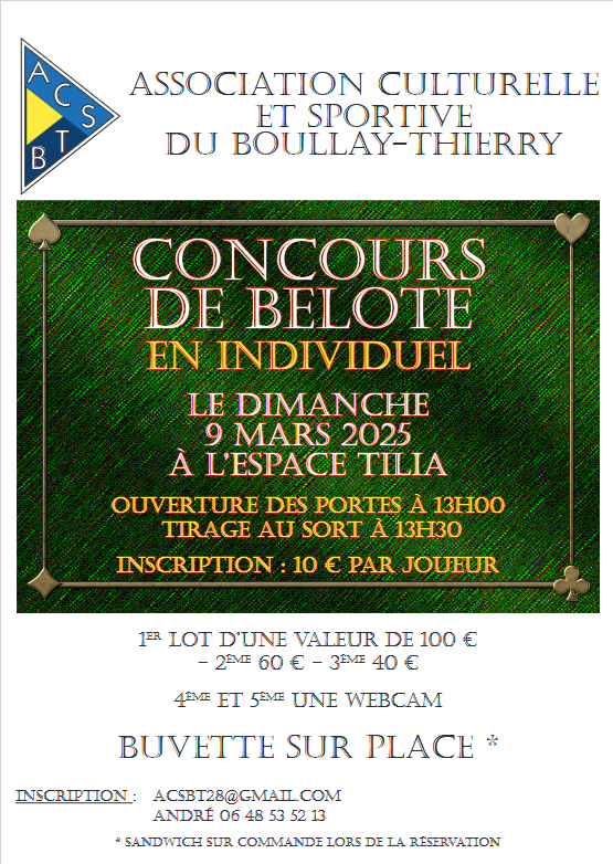 INSCRIPTION: acsbt28@gmail.com ou André 06 48 53 52 13