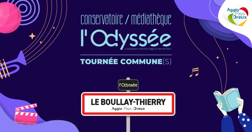 L'Odyssée fait sa tournée commune(s) ! La médiathèque et le conservatoire se rendront au Boullay-Thierry le vendredi 6 février, pour proposer aux habitants une soirée conviviale pleine de surprises. Au programme : lectures à voix haute (pour un public ado/adulte), quiz musique & cinéma et pastilles musicales par la classe d'alto et violon d'Alexandra Vilain. Rendez-vous à l'espace Tilia, place du château 28210 Le Boullay-Thierry. Un pot de convivialité sera offert par la commune.
