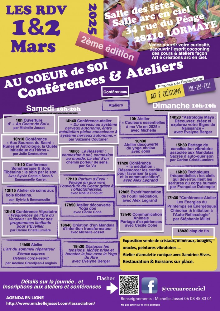 La journée du samedi 1er Mars se terminera aux environs de 20h. Il sera possible de rester échanger et partager une repas ensemble si cela vous en dit.