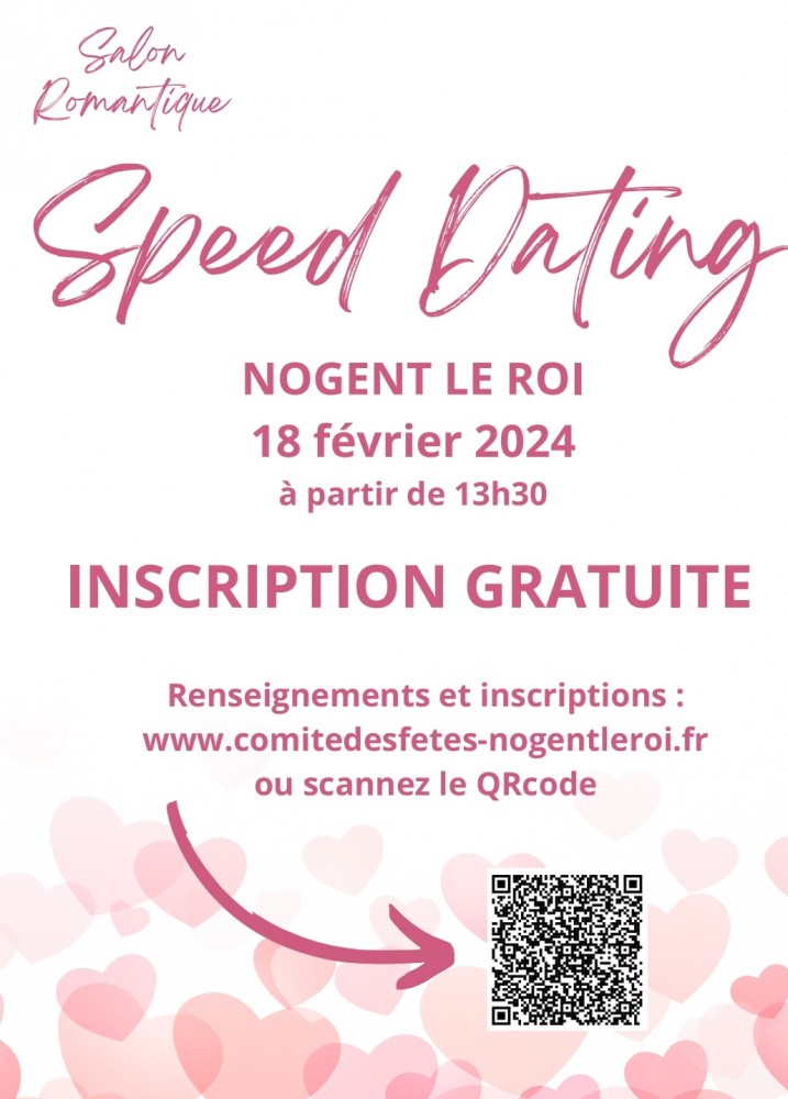 Inscrivez vous pour le SPEED DATING du SALON ROMANTIQUE de NOGENT LE ROI, le dimanche 18 février 2024.