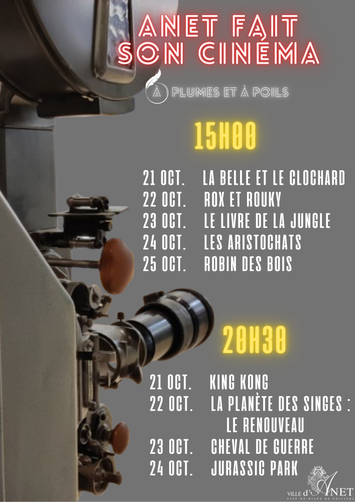 Dans le cadre du thème « À plume et à poils », le cinéma d'Anet vous propose de voir ou revoir quelques-uns des plus grands films mettant en scène des animaux.
