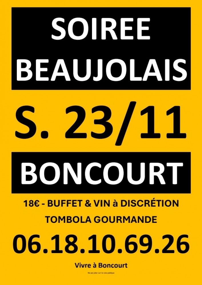 pour accompagner ce moment de fête et de saveur VIVRE A BONCOURT vous propose un buffet bien garni arrosé comme il se doit, de beaujolais à discrétion.