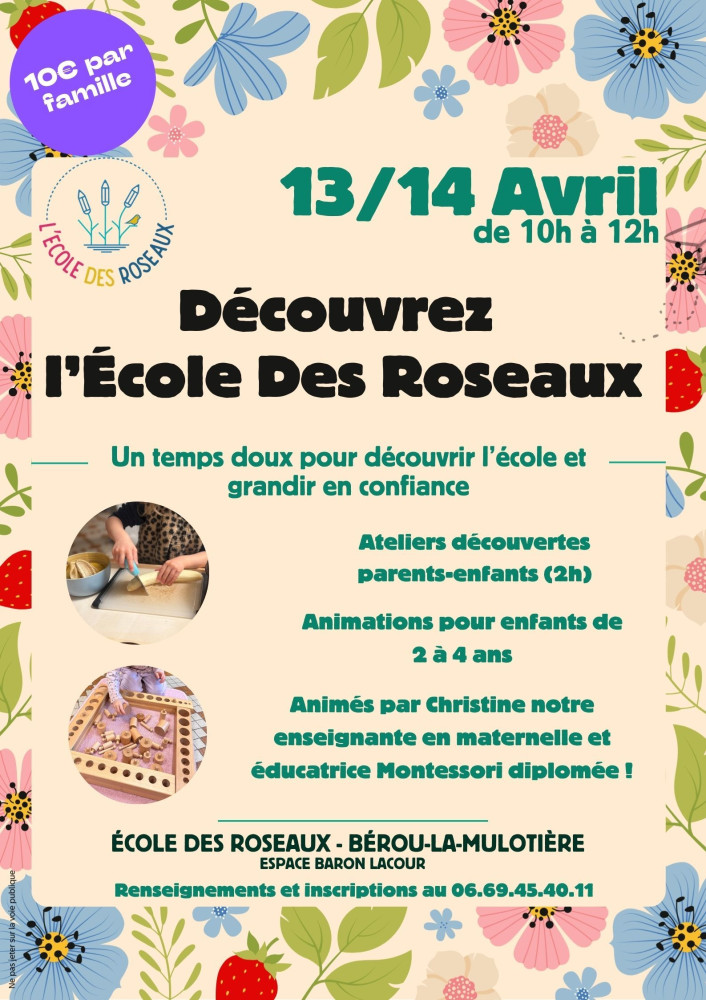 Venez découvrir la pédagogie Montessori et partager un moment avec votre enfant. Animé par Christine, notre enseignante et éducatrice Montessori diplômée. Pour les enfants de 2 à 4 ans. 10€ l’atelier, au profit de la sortie scolaire des maternelles. Réservation obligatoire sur 06 69 45 40 11.