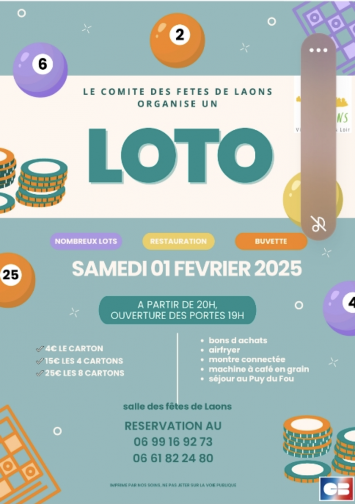 Le comité des fêtes de Laons organise un Loto le samedi 1 février 2025 !