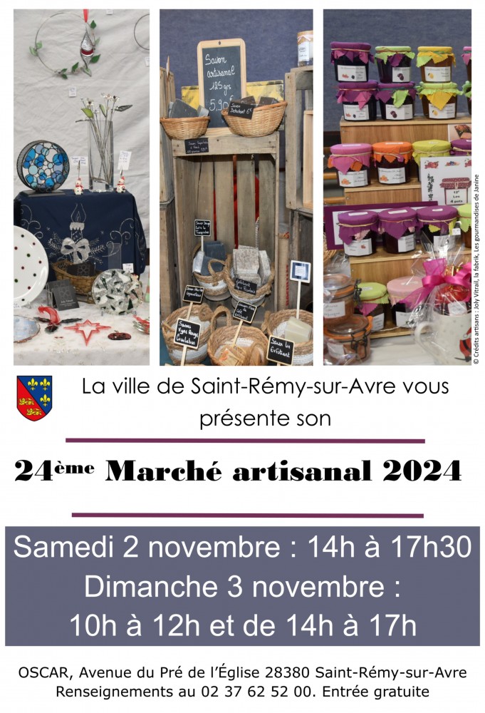 Samedi 2 et dimanche 3 novembre 2024, la commune de Saint-Rémy-sur-Avre vous propose son 24ème Marché Artisanal.