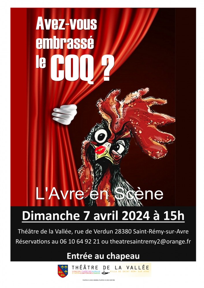 La troupe de l’Avre en Scène présente la pièce : “Avez-vous embrassé le coq?”.