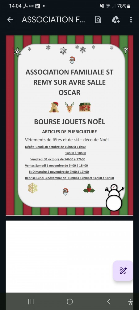 L'association Familiale de St remy sur Avre organise sa traditionnelle bourse aux jouets de Noël à la salle OSCAR du jeudi 30 octobre au Lundi 3 Novembre 2025