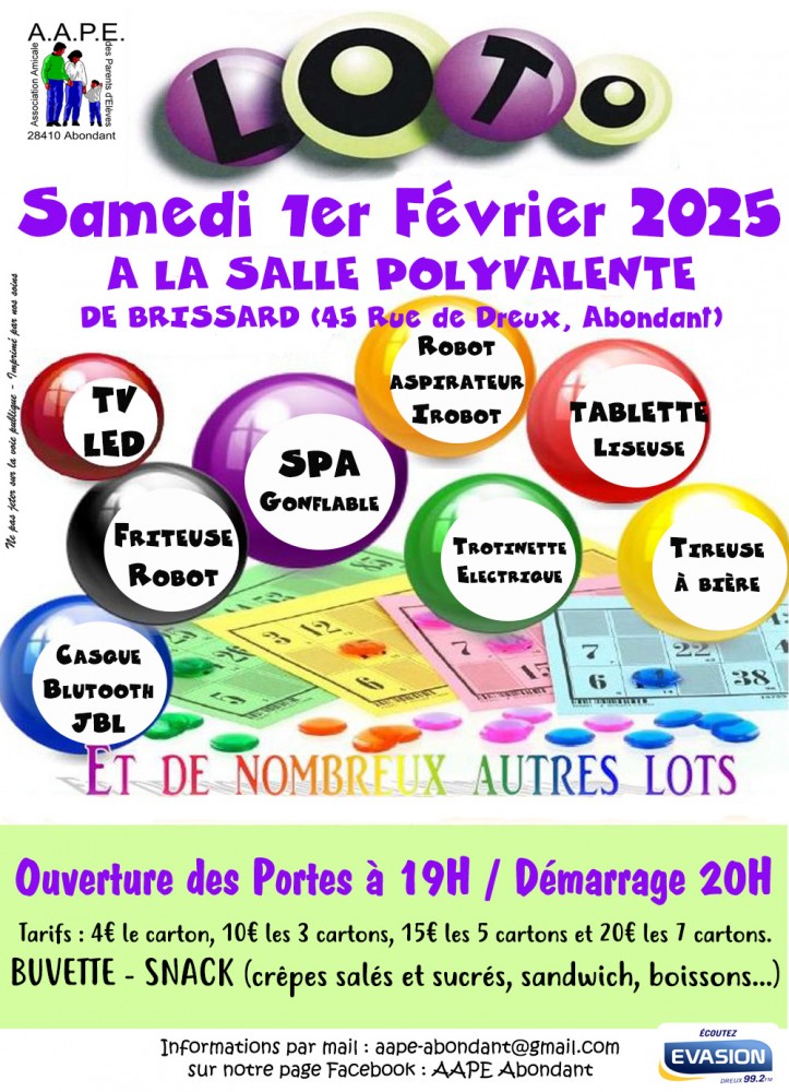 Ouverture des portes de la salle polyvalente de Brissard à Abondant à 19h. Démarrage à 20h. Pas de réservation de place.