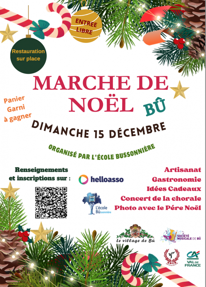L’École Bûssonnière (Association de parents d'élèves de Bû) organise pour la 17ème fois cette année un marché de Noël sur la commune de BÛ et nous vous invitons à venir partager cet événement avec nous.