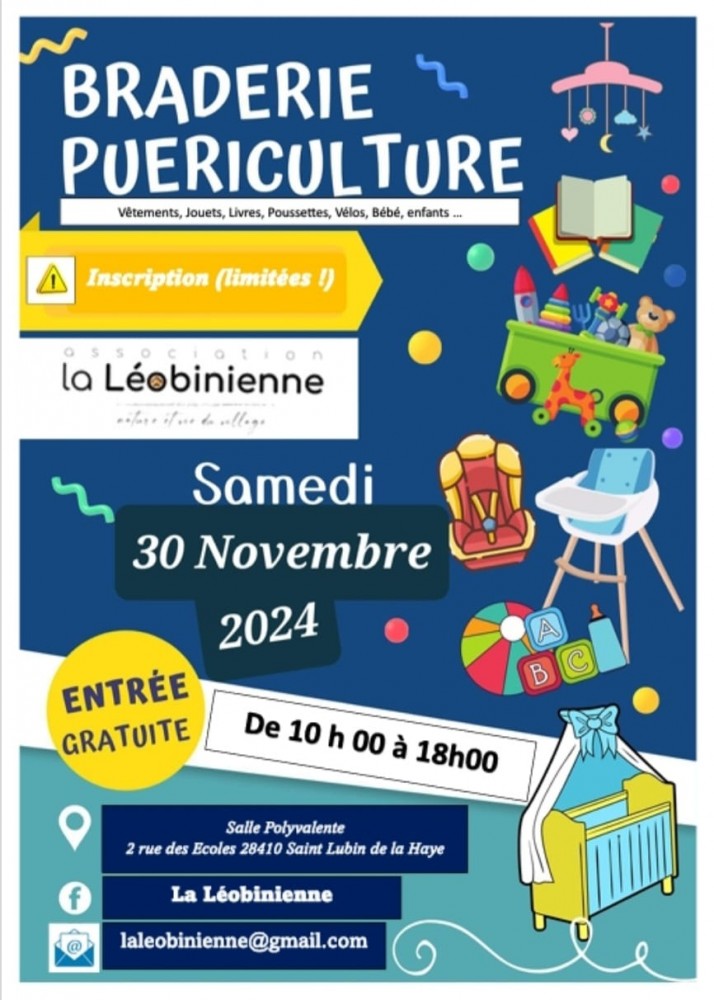 Une brocante dédiée aux articles de puériculture, des vêtements de grossesses et vêtements enfants (bébé à pré-ados) aux accessoires (poussettes, sièges auto ...) en terminant par les jouets et livres (vélos enfants également) .