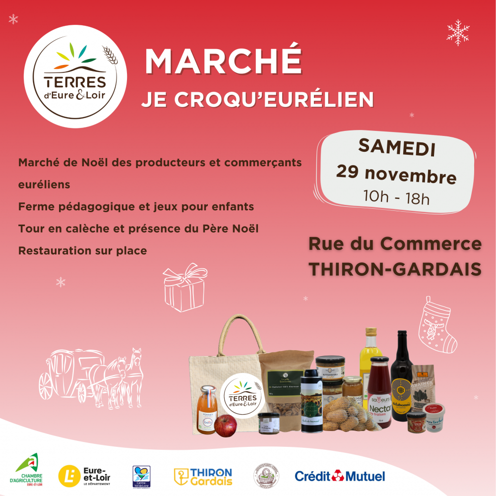 Retrouvez une vingtaine de producteurs Terres d'Eure-et-Loir, d'artisans et commerces locaux, samedi 29 novembre 2025 !