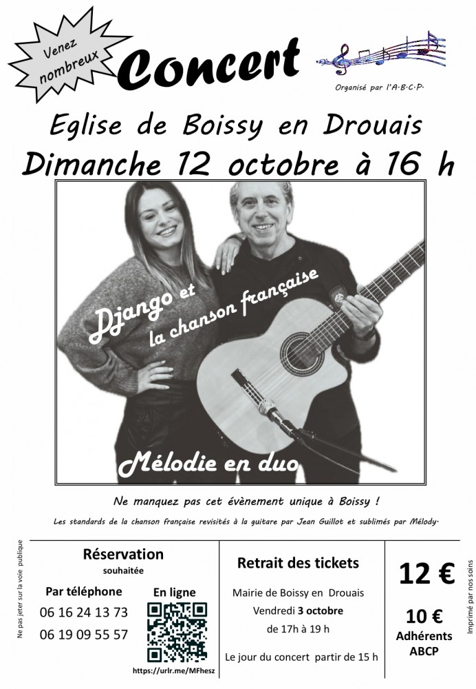 Une permanence pour la vente des tickets sera assurée le vendredi 03 octobre de 17 à 19 h à la mairie de Boissy en Drouais.