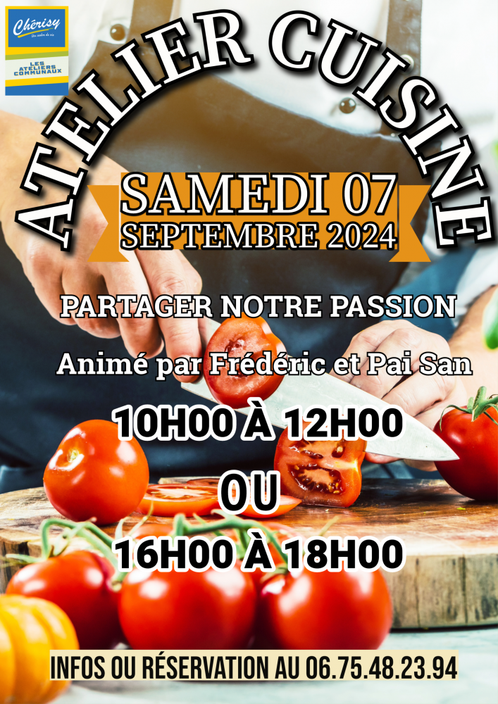 Rejoignez notre Atelier Cuisine pour une expérience culinaire inoubliable ! Animé par les Maîtres Restaurateurs Frédéric et Pai San, cet atelier vous propose de découvrir de nouvelles recettes, de nouvelles saveurs et des techniques de cuisine avancées, le tout avec des produits frais. Profitez de moments conviviaux dans notre salle communale. Choisissez entre les créneaux du samedi 07 septembre, de 10 h à 12 h ou de 16 h à 18 h, pour seulement 20 €, menu complet inclus. Les places sont limitées, réservez dès maintenant pour une expérience gastronomique exceptionnelle !