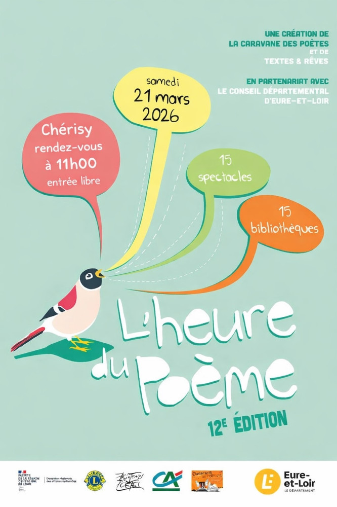 Le samedi 21 mars à 11h, dans le cadre du Printemps des Poètes, les comédiens, musiciens, chanteurs de la Caravane des Poètes font une halte à la Bibliothèque de Chérisy.