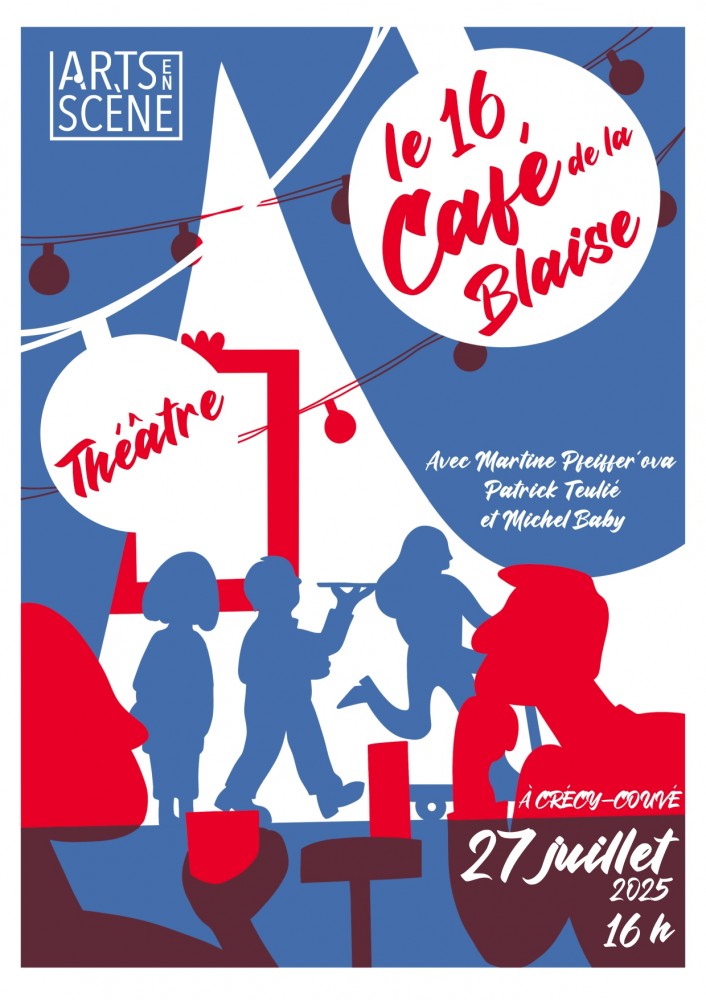 Invitée par Le 16 Café de la Blaise, l'association Arts en scène propose quelques courts sketchs avec trois de ses comédiens. Au programme : « Réclamations » de Jean-Michel Ribes ; « L'art moderne » de Chevalier & Laspalès ; « Le sous-entendu », « La gauche » et « La trottinette » de Salomé Lelouch ; et bien d'autres surprises.
