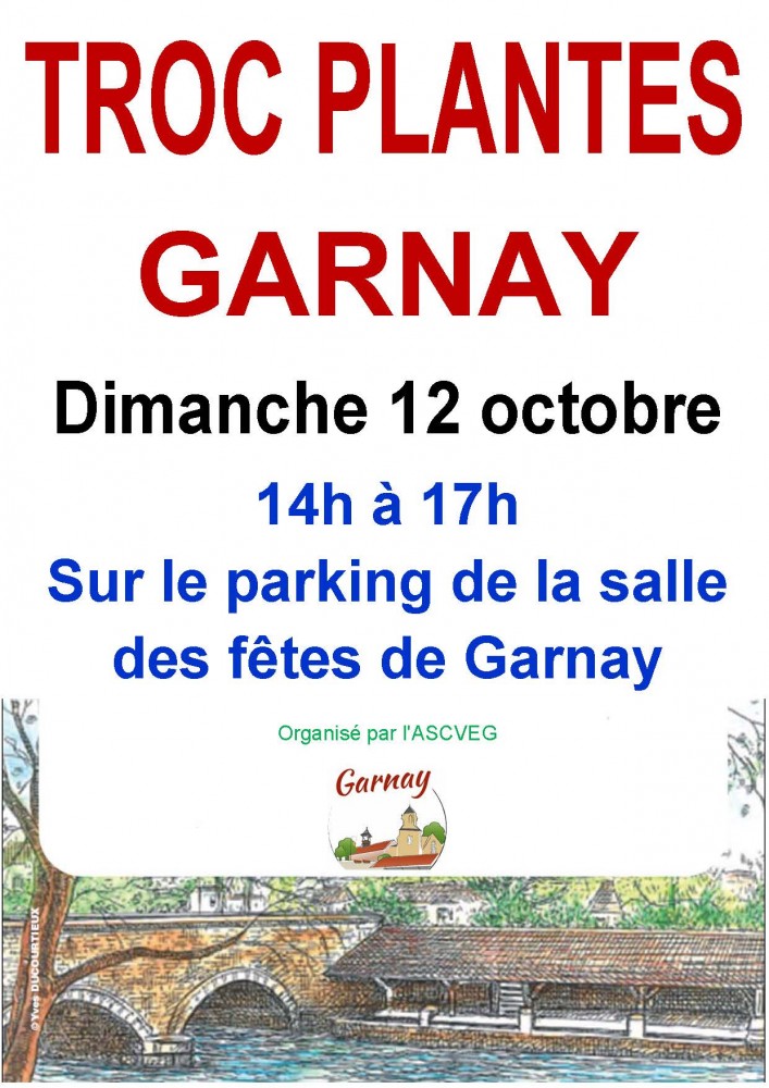 TROC PLANTES d’automne de Garnay le dimanche 12 octobre 2025 de 14h à 17H sur le parking de la salle des fêtes de Garnay.
