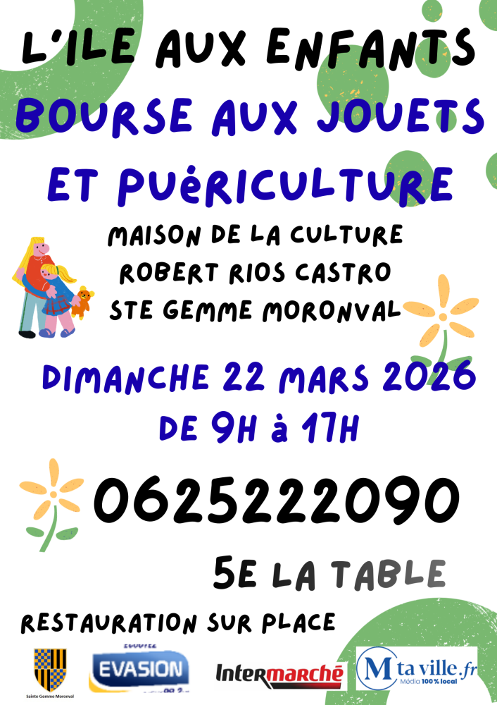 L'association d'assistantes maternelles l'Île aux enfants situé à Sainte Gemme Moronval organise la bourse aux jouets et puériculture