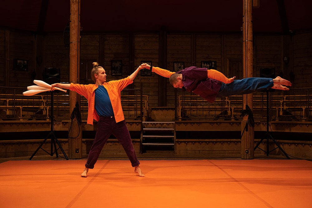 Le chorégraphe Sylvère Lamotte compose un duo entre danse, jonglage et acrobatie. Fondu dans un même corps, les deux interprètes virtuoses prennent chacun leur élan pour élargir l’horizon de leurs disciplines, comme une ode à la découverte de soi.