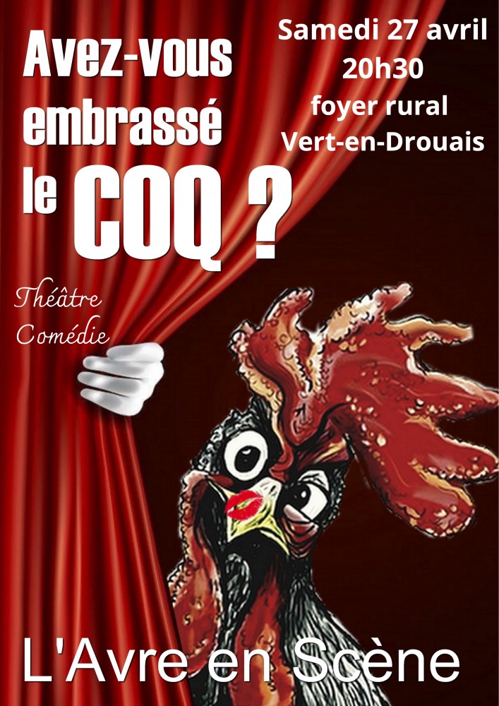 La troupe de théâtre de l'Avre en Scène vous présente sa nouvelle comédie où s'enchainent gaffes , quiproquos et catastrophes ! Ne manquez pas la dernière représentation à Vert-en-Drouais! Verre de l'amitié offert à la fin du spectacle.