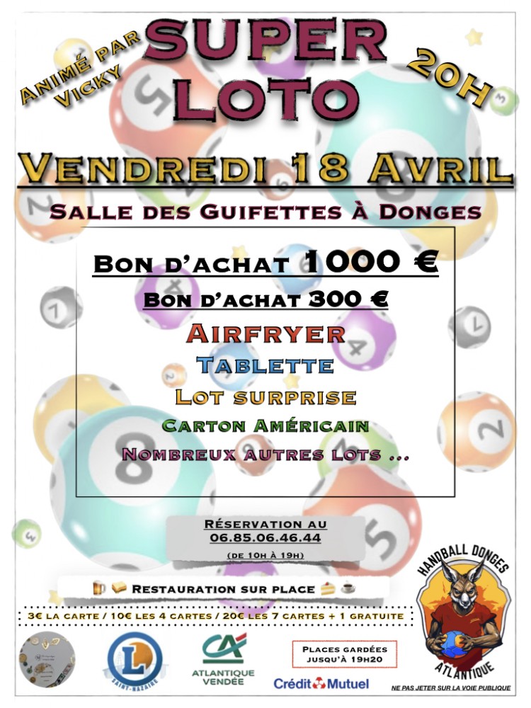 Le Handball Donges Atlantique a le plaisir de vous convier à son Super Loto ! Venez tenter votre chance pour remporter des prix exceptionnels.
