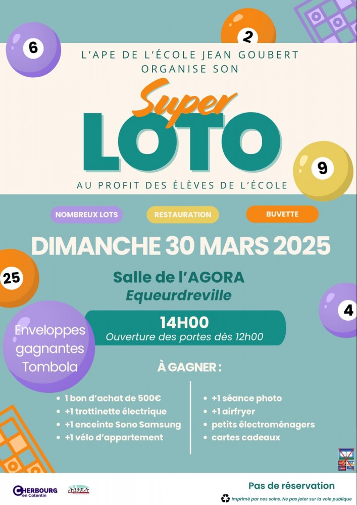 L'association des parents d'élèves organise un super loto au profit de l’école primaire Jean Goubert.