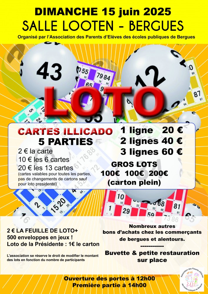 LOTO organisé par l'association des Parent d'élèves des écoles publiques de Bergues !
