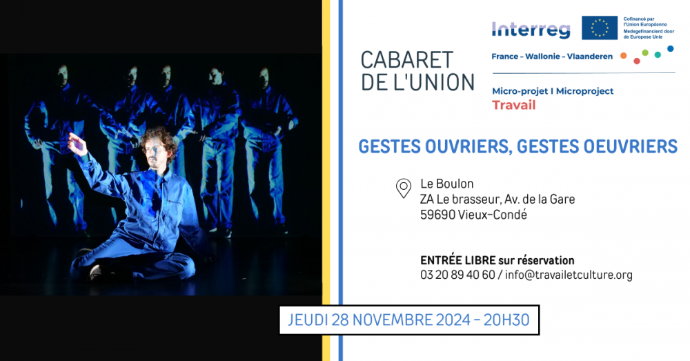 Travail et Culture (TEC CRIAC) s'est associée au Centre culturel Arrêt 59 de Péruwelz pour mener un projet européen sur le TRAVAIL d'hier, d'aujourd'hui et de demain, dans le territoire transfrontalier Valenciennois - Péruwelzis. C'est le travail d'aujourd'hui qui sera interrogé lors de cet événement public.
