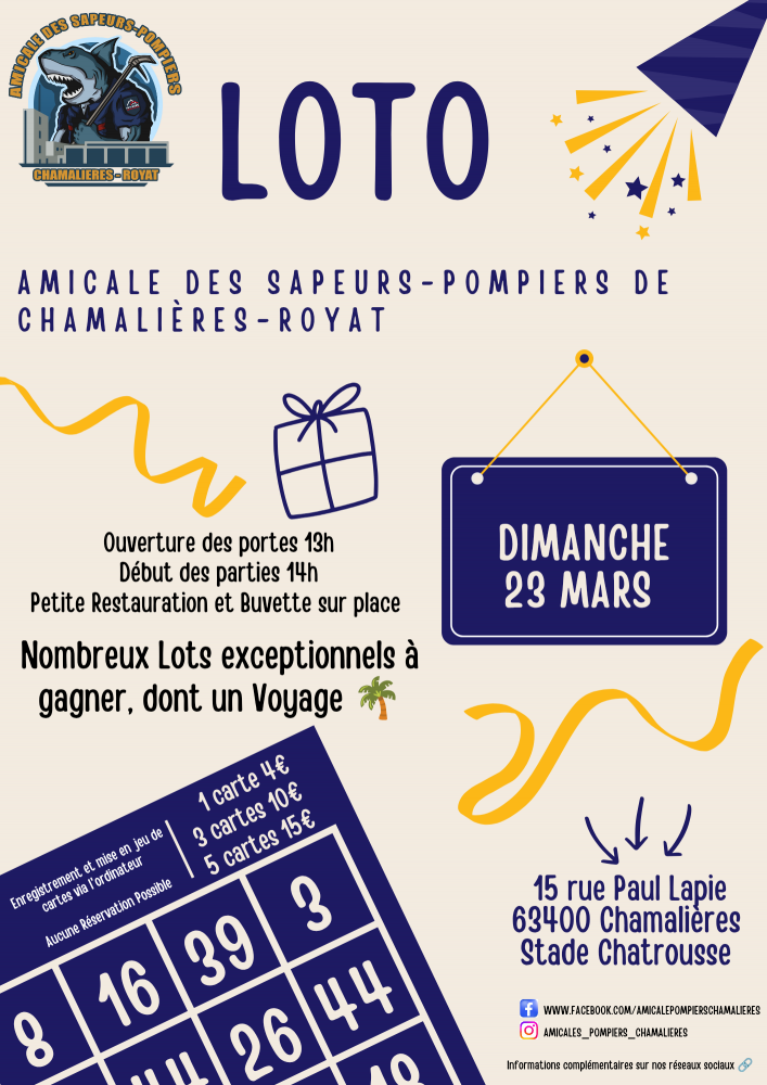 LOTO DES SAPEURS-POMPIERS DE CHAMALIÈRES ROYAT