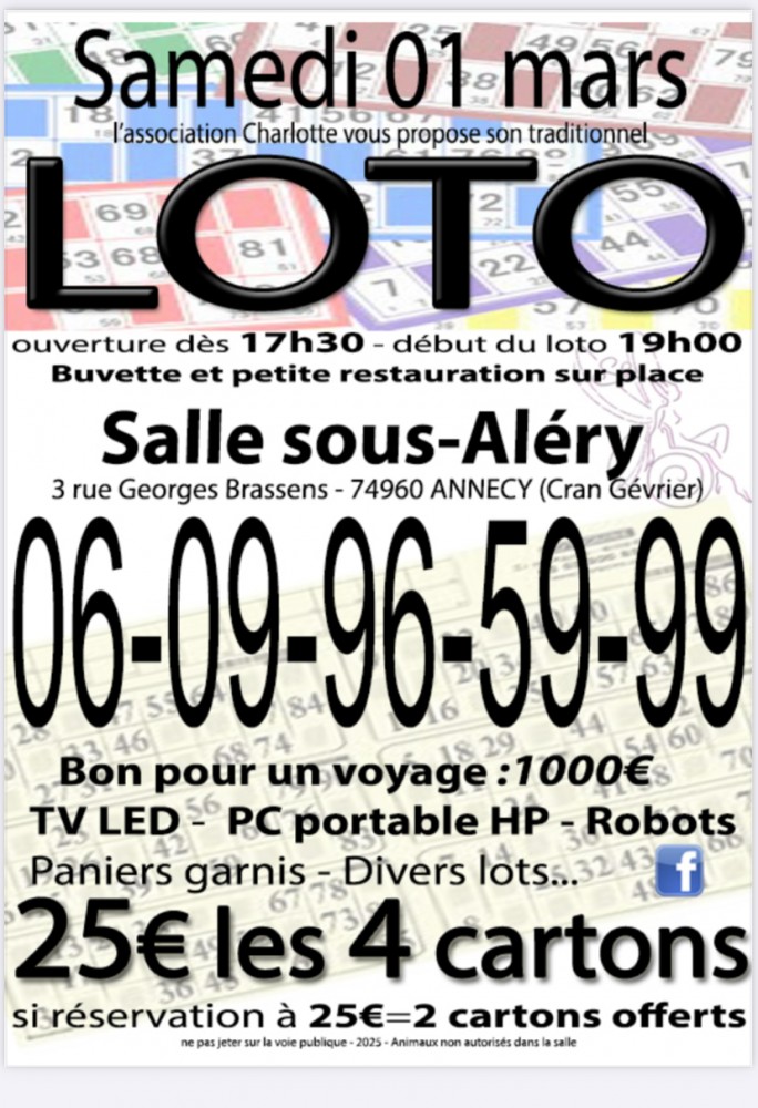 L'association Charlotte vous propose son traditionnel loto !