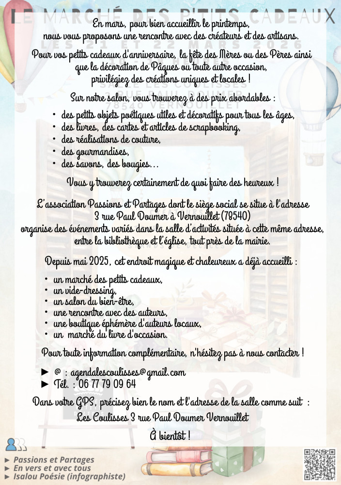 Exposition ventes de créateurs et créatrices . Consultez la page de l'exposition.