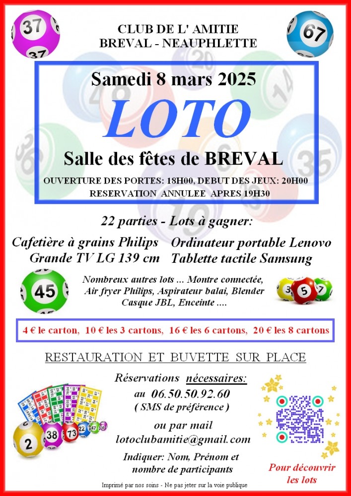 22 parties et de nombreux lots à gagner dont TV 139 cm, ordinateur portable, tablette, montre connectée, air fryer, cafetière à grains, etc...