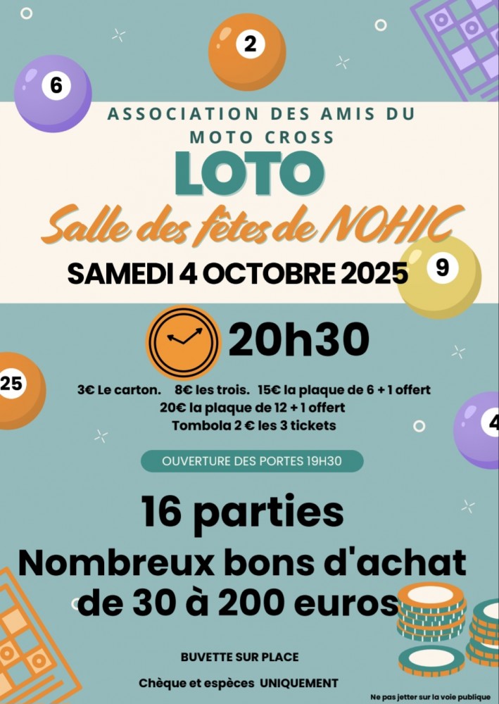 Début du loto 20h30 - Ouverture des portes 19h30